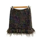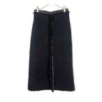 ブラミンク BLAMINK ツイードスカート セミタイト フリンジ 前スリット ブラック 送料無料 i0131m01355 中古 古着 ブランド古着DB