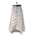ヤヌーク YANUK デニムフレアスカート ミモレ ロング フリンジ加工 XS 白 ホワイト ■FY レディース