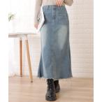 デニムスカート ハイウエスト フリンジ スリット デニム ロング スカート