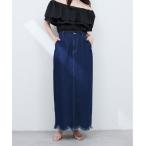 スカート ハイウエスト フリンジ スリット デニム ロング スカート