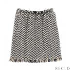 シャネル CHANEL ココマーク ヘリンボーン スカート ウール ナイロン ネイビー ホワイト ライトブラウン フリンジ P62387V47803 レディース 中古