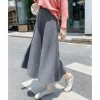 スカート フレアニットスカート 着やせ 無地 秋冬