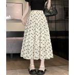 スカート ミモレ丈花柄プリントスカート