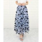 スカート 立体花柄 フロッキープリント チュールロングスカート