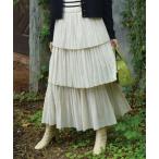 スカート プリーツティアードフリルロングスカート