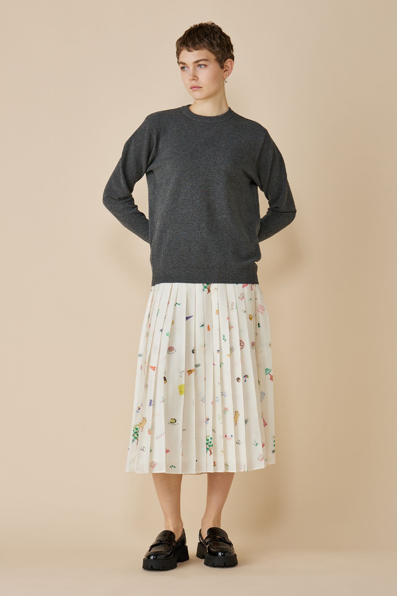 MUVEIL(ミュベール)/落書きプリントプリーツスカート