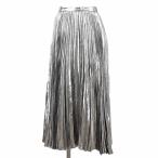 CELINE セリーヌ スカート プリーツ メタリック 36 レディース ビスコース/メタリックファイバー/シルク サイドジップ シルバー 銀色 仏製