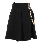 【美品】LOUIS VUITTON ルイ・ヴィトン スカート プリーツ ロゴ LV モノグラム フラワー ゴールドチェーン Aライン レディース 38 黒 伊製