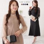 シアードッキングVネック長袖ワンピース 女性 レディース ドレス シフォン レース 透け感 ビスチェ風 タイト フレアスカート マーメイドライン 春