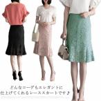 総レース スカート レディース タイトスカート マーメイドライン フレアスカート ヒザ丈 ひざ丈 レーススカート 花柄 レース スカート タ