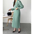 ワンピース ヘム裾 マーメイドライン プリーツスカート ワンピース