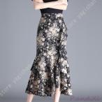 スカート フラワーラインプリントマーメイドスカート