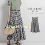 スカート ロング レディース ボトムス チェック柄 ギンガムチェック フレア マーメイド Aライン 体型カバー オフィス お洒落 ウエストゴム 春 夏