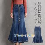デニムスカート レディース マーメイド タイトスカート ボタン ロング フィット ボトムス 可愛い お洒落 無地 Aライン 春夏秋冬 通勤 着やせ