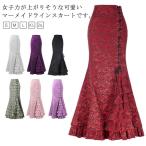 ビンテージ ゴシック レースアップ タイトスカート マーメイドラインスカート スカート フリル パッチワーク 総柄 おしゃれ リボン M ロングスカー