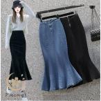 デニムスカート ロング丈 マーメイドライン タイトスカート カジュアル キレイめ 無地 お出かけ デート 韓国ファッション ハイウエスト かっこいい