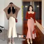 ニットスカート マーメイドスカート スカート レディース 秋冬 可愛い ボトムス あたたかい ストレッチ ミモレ丈 ロング ストレート Aライン