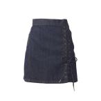 デニムスカート APPLE PANDA刺繍 サイドレースアップデニムミニスカート