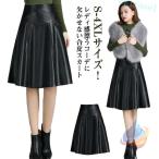 膝上 秋冬 フレアスカート レザースカート フェイクレザー Aライン きれいめゾンチーハイウエストスカート 送料無料 合皮 膝上丈 大きいサイズ 無地 PU