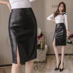 スリットスカート タイトスカート レザースカート PUスカート 無地 膝丈 レディース 通勤 オフィスOL 二次会 着痩せ 春秋冬新作【2WAY/前後着用可能】