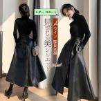 レザースカート PU ロングスカート レディース 膝下丈 無地 ボトムス 体型カバー 着痩 Aライン 可愛い 春夏秋冬 通勤 お洒落 高級感