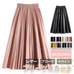 プリーツスカート エコレザー レディース フレアスカート プリーツ Aライン 春 秋 冬 レザースカート 柔らかい ボトムス スカート コーデ エレガント 優雅