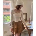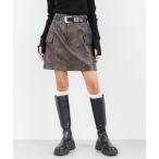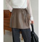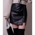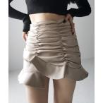 スカート 「 インパン裏地付 」フェイクレザーハイウエストシャーリングフリルミニスカート / fake leather high waist sh