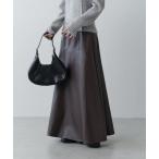 スカート レディース ダークブラウン ロング丈 プリーツ フェイクレザー 総ゴム おしゃれ お手入れ簡単 レザー見えプリーツスカート OTONA 40代 50代 60代