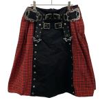 CHOPOVA LOWENA チョポヴァ・ロウェナ 24AW レザーベルテッドチェックスカート レッド S IT2CGL8KA91E