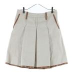 miumiu ミュウミュウ ワッペンロゴ レザートリム タックデザイン ミディアム スカート ベージュ/ブラウン レディース MG2198