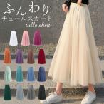 チュールスカート ロング マキシ ミモレ丈 レディース Aライン フレア ウエストゴム 裏地あり 無地 春夏 体型カバー ふんわり