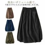 バルーンスカート ロング スカート レディース 春 秋 バルーン aラインスカート ハイウエスト ミモレ丈スカート ボトムス ウエストゴム スカート バルーンシルエ