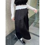 スカート 「2点セット」シアーエプロンセットサテンロングスカート