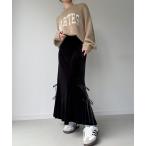 スカート 大人可愛い!愛され美ライン。シャーリングリボン使いマーメイドスカート(ロング丈)