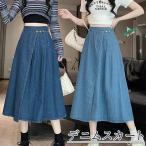 デニムスカート 巻きスカート ラップスカート デニム aラインスカート フレア スカート aライン スカート 大人 ボトムス カジュアル おしゃれ ミモレ丈 プリーツ