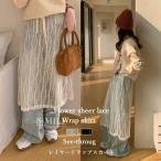 【送料無料】シアーレースフラワー刺繍レイヤードラップスカート 人気再販 レディース スカート シースルーボトムス 春夏巻きスカート 巻き レイヤード 重ね着
