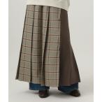 スカート 「巻きスカートとしても」チェック切替プリーツスカート
