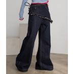 ジーンズ デニム デニムパンツ 巻きスカート付きストレートデニムパンツ レディース
