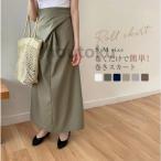マキシ丈スカート ロング丈 春 夏 巻きスカート フレア レディース ラップスカート トレンド サテン 光沢感 ミモレ丈 カジュアル コーデ