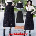 マキシ丈スカート 刺繍フラミンゴ ロングスカート 巻きスカート ダウン綿 スカート 暖かい 防寒 冬 ボトムス 防寒性能抜群 代引不可