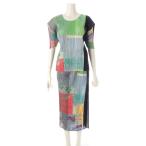 プリーツプリーズ イッセイミヤケ 総柄 メッシュ 半袖 カットソー 巻き ラップ スカートセットアップ マルチカラー 3/FREE SIZE【中古】
