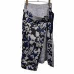 アルチザン 【新品】ARTISAN ロングスカート 花柄 裏地付き 巻きスカート風 麻×綿(裏地:キュプラ100%) 7号 S ヘザーネイビー レディース