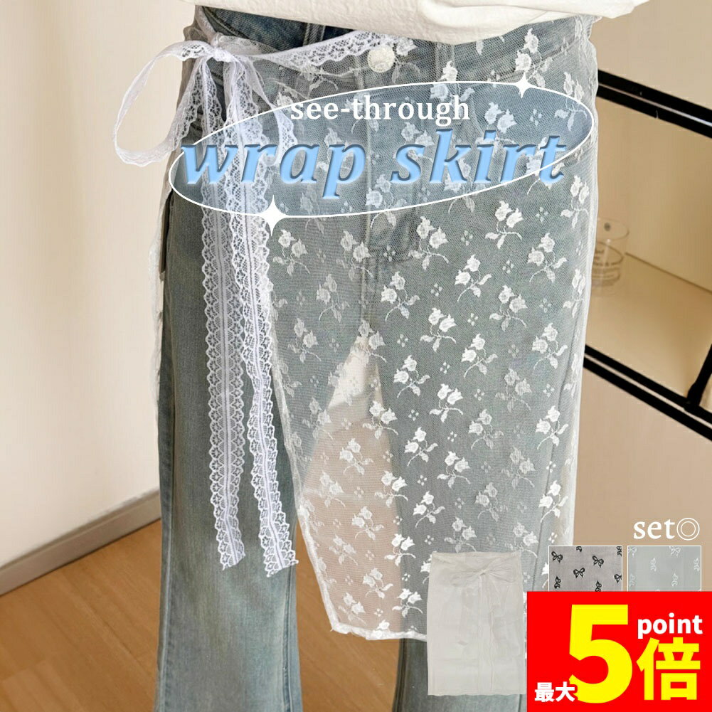 ★期間限定!ポイント5倍★ラップスカート レイヤードラップスカート SNS話題スカート 巻きスカート トレンドアイテム 韓国風 グランジスタイル バレエコア y2k シアー レース 付け裾 レディース シースルー 巻き レイヤード 重ね着