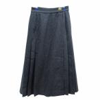 エルメス HERMES ラップスカート 巻きスカート ウール カシミヤ混 金ボタン プリーツ 裏地 Hロゴ柄 馬車タグ 38 約S 灰 グレー