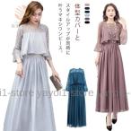 パーティードレス 結婚式 ワンピース パーティー ドレス 大きいサイズ お呼ばれ ロング丈 巻きスカート風 ワンピース レース 袖あり 大人 上品 二