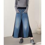 スカート 異素材デニムドッキングAラインスカート