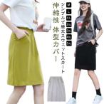 ミディアムスカート 膝丈 夏 春 Aライン ウエストゴム スカート 無地 スウェットスカート ハイウエスト スカート ボトムス スカート スポーツ カ