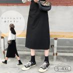 送料無料 スカート 膝下丈 ミモレ丈 ロング丈 レディース 女性 婦人 大きいサイズ フレアスカート ロング丈 ボトムス スリット入り ハイウエスト 単色 無地 Aライン きれいめ おしゃれ かわいい カジュアル シンプル シック お出かけ 通勤 ゆったり 着回し ヘビロテ 黒 春 秋