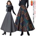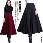 フレアスカート 冬 フレアスカート ハイウエスト 体型カバー Aライン 秋冬 ウール調 大きいサイズ 黒 スカート 86cm ロングスカート マキシス
