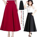 最旬トレンド スカート レディース 女性 きれいめ ロングスカート マキシ丈 スカート Aラインスカート フレアスカート ボトムス 無地 Aライン フレア ハイウエスト ウエストゴム 体型カバーポケット付き